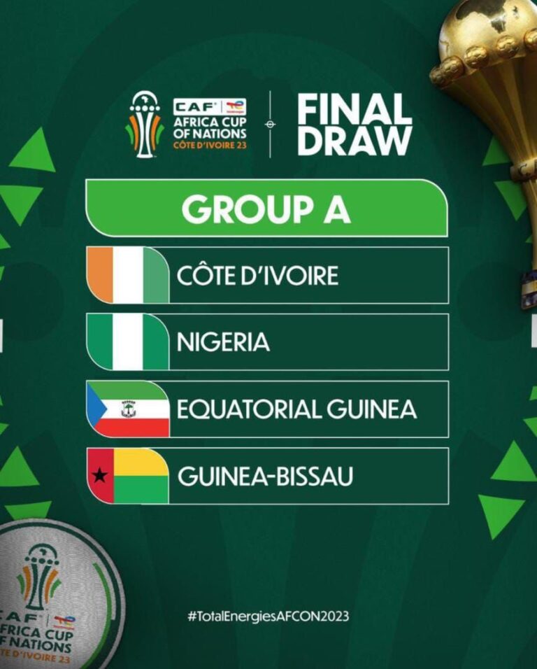 By Sportgister Nigeria have been drawn alongside 2023 AFCON hosts Ivory Coast, Equatorial Guinea and Guinea Bissau in Group A...