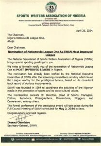 According to SWAN, the nomination of the Nationwide League One as the Most Improved League in Nigeria, had been ratified by the National Executive Committee of SWAN after the screening committee’s scrutiny which found the League worthy of the prestigious honour, based on its consistent track record of obvious improvements.