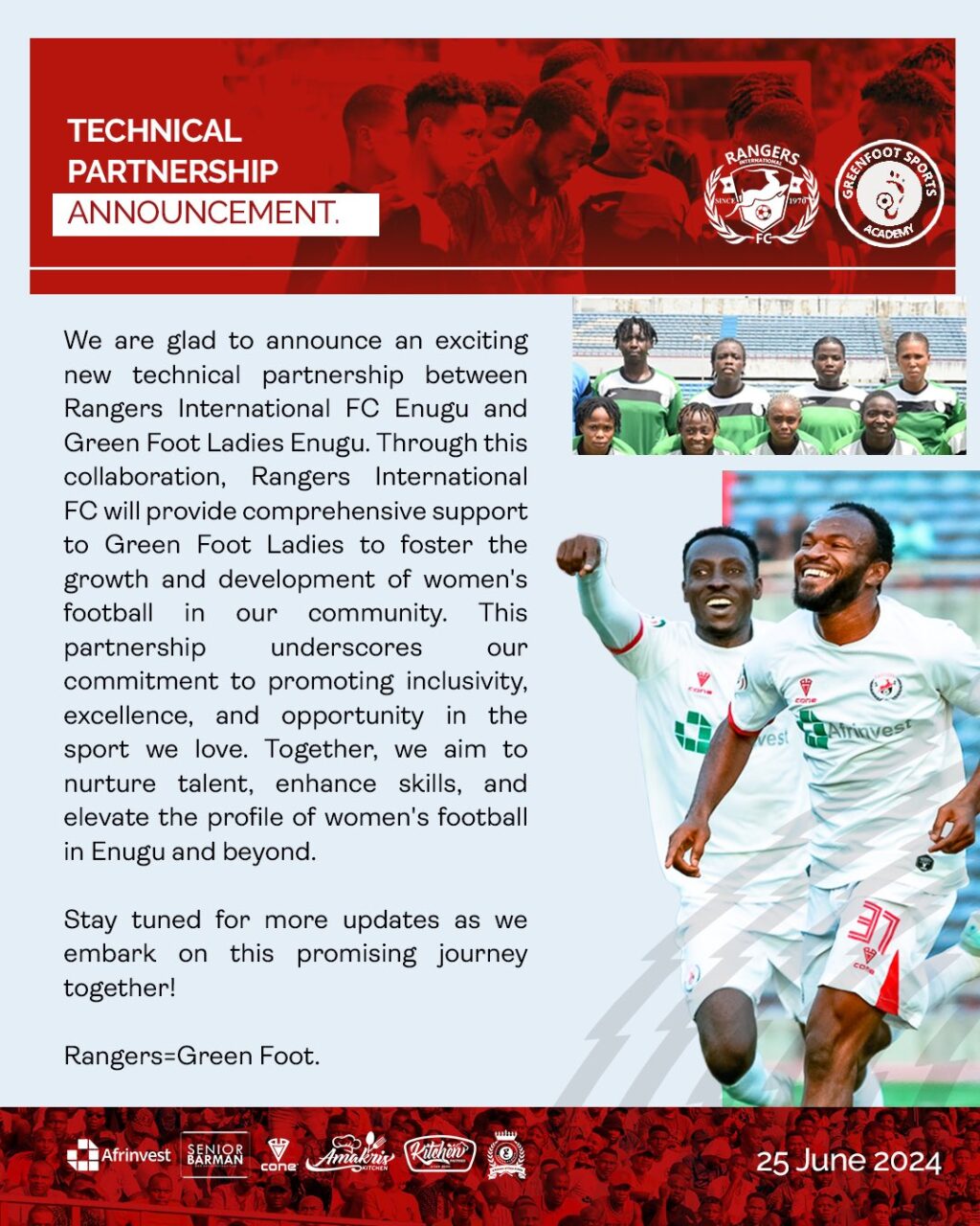 Rangers have concluded plans to partner with Green Foot Ladies in their bid to meet CAF’s requirements to participate in the Champions League next season.