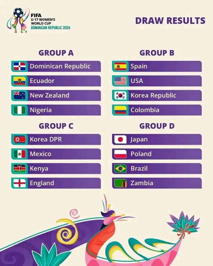 By Sportsgister Nigeria’s Flamingos have been drawn with hosts Dominican Republic, Ecuador and New Zealand in Group...