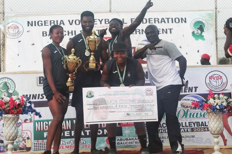 ... men's team wins 2nd position The Nigeria Customs Service (NCS) women's beach volleyball team has emerged victorious...