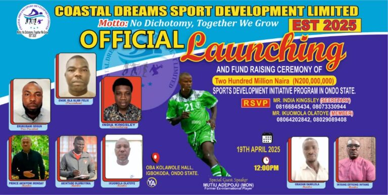 A sports non-governmental organization with motto "no dichotomy, together we grow will be launched in Igbokoda in Ilaje local...