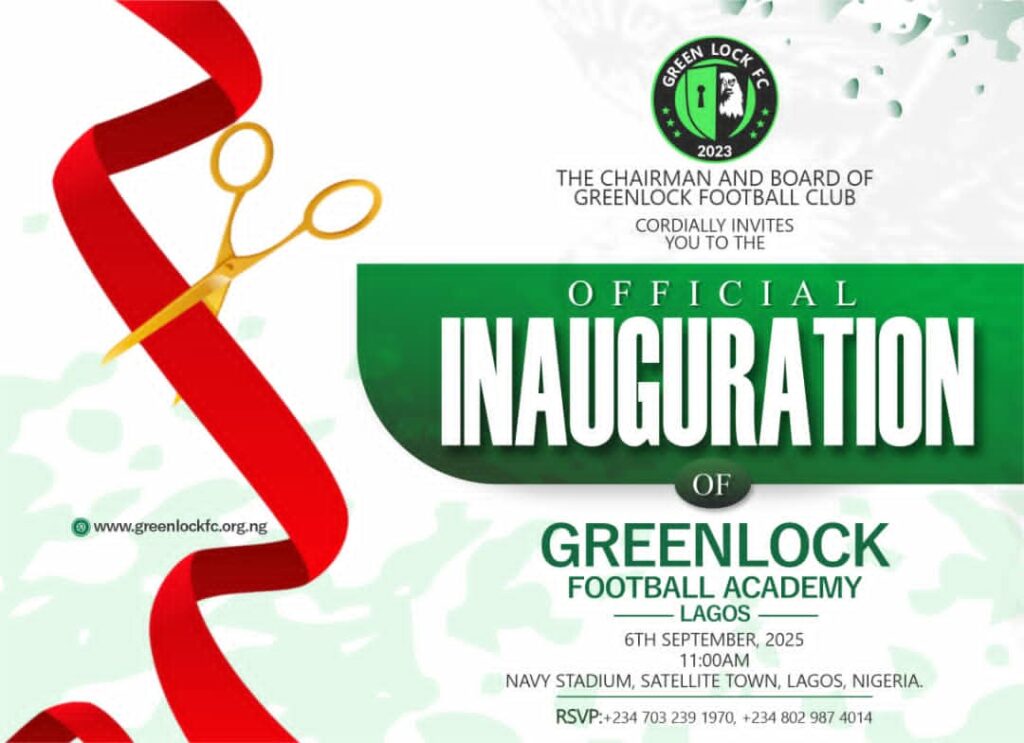 The official ceremonial inauguration of the fast-rising football citadel of learning, GreenLock Football Academy, will take place at the Navy Town Stadium, Satellite Town, on 6th September.