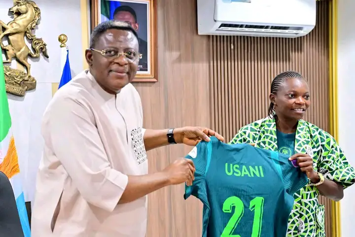 By Sportsgister The Governor of Cross River State, Senator Bassey Otu, has rewarded Super Falcons defender Miracle...